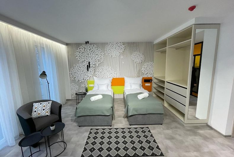 The 4-storey hotel building with 35 standard rooms, 27 standard rooms with balcony, 2 barrier-free, and 3 suites and 3 de-luxe suites, - altogether in 71 units 168 guests can be accommodated. The hotel awaits the city break, theatre, art, water sports lovers and business travellers.