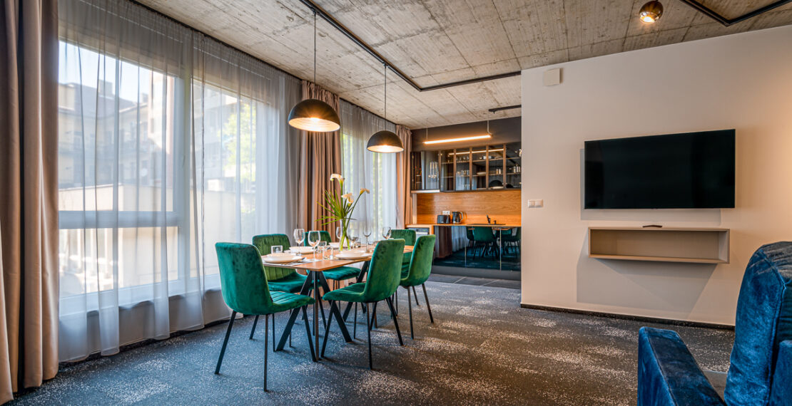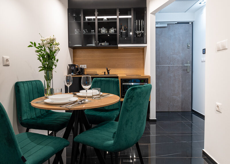 Our apartments, which are more richly furnished than the usual hotel rooms, include a dining area with a fully equipped kitchen. A Nespresso coffee machine, induction hob, oven/microwave and built-in fridge, as well as quality cutlery are waiting for our guests. Our bathrooms are equipped with a shower, hairdryer and toiletries. The Noir Hotel is located in a quiet, easily accessible location, within walking distance of Szeged's attractions, so we recommend it for families coming to our city for a rest, but its location and convenience make it the perfect place for business travel or for those passing through. For those arriving by car, we offer a closed parking for an extra fee.